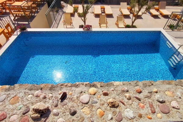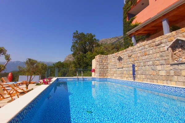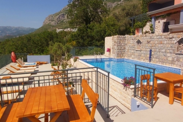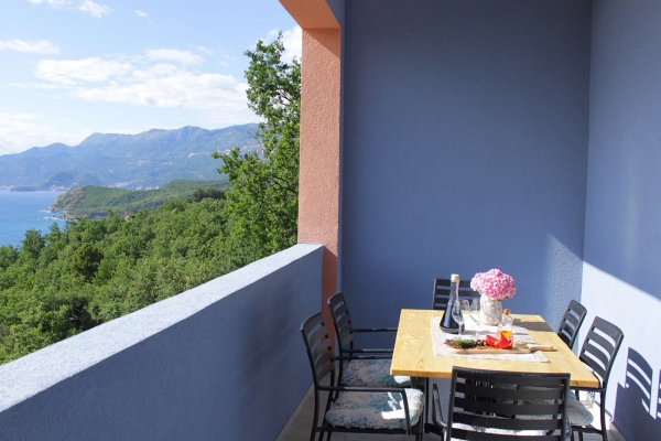 Welcome to our family home where we are waiting for You and we are at Your disposal. The house have several apartments with beautiful sea views, with one or two bedrooms, provided with private parking, pool,free wifi, laundry service, a servant that worries about the cleanliness of your apartment, cable TV, air conditioning and central heating, safe.... We serve a traditional breakfast in the room. Around the apartment there are several small wild stone beaches. We recommend our guests to come with the car because we are away from the City Center. Of course there is a bus stop that connect us with Budva and Petrovac